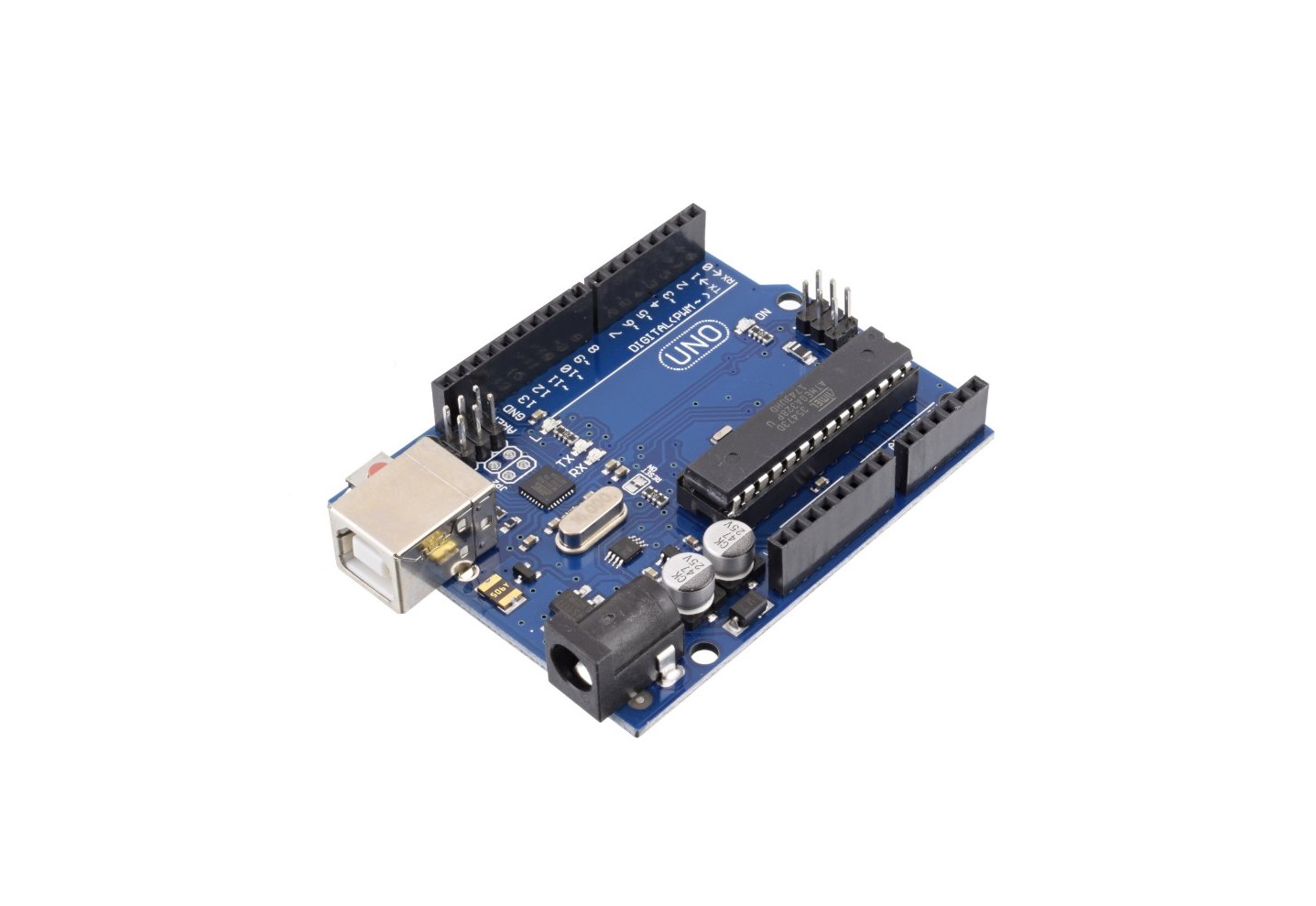 Mikrokontrolér Arduino Uno R3 je klíčovým prvkem tohoto projektu, sloužícím jako základní deska a zároveň CPU. Jeho úlohou je poskytnout prostředí pro programování, spojení veškerých součástek a efektivní řízení celého systému digitálních hodin.